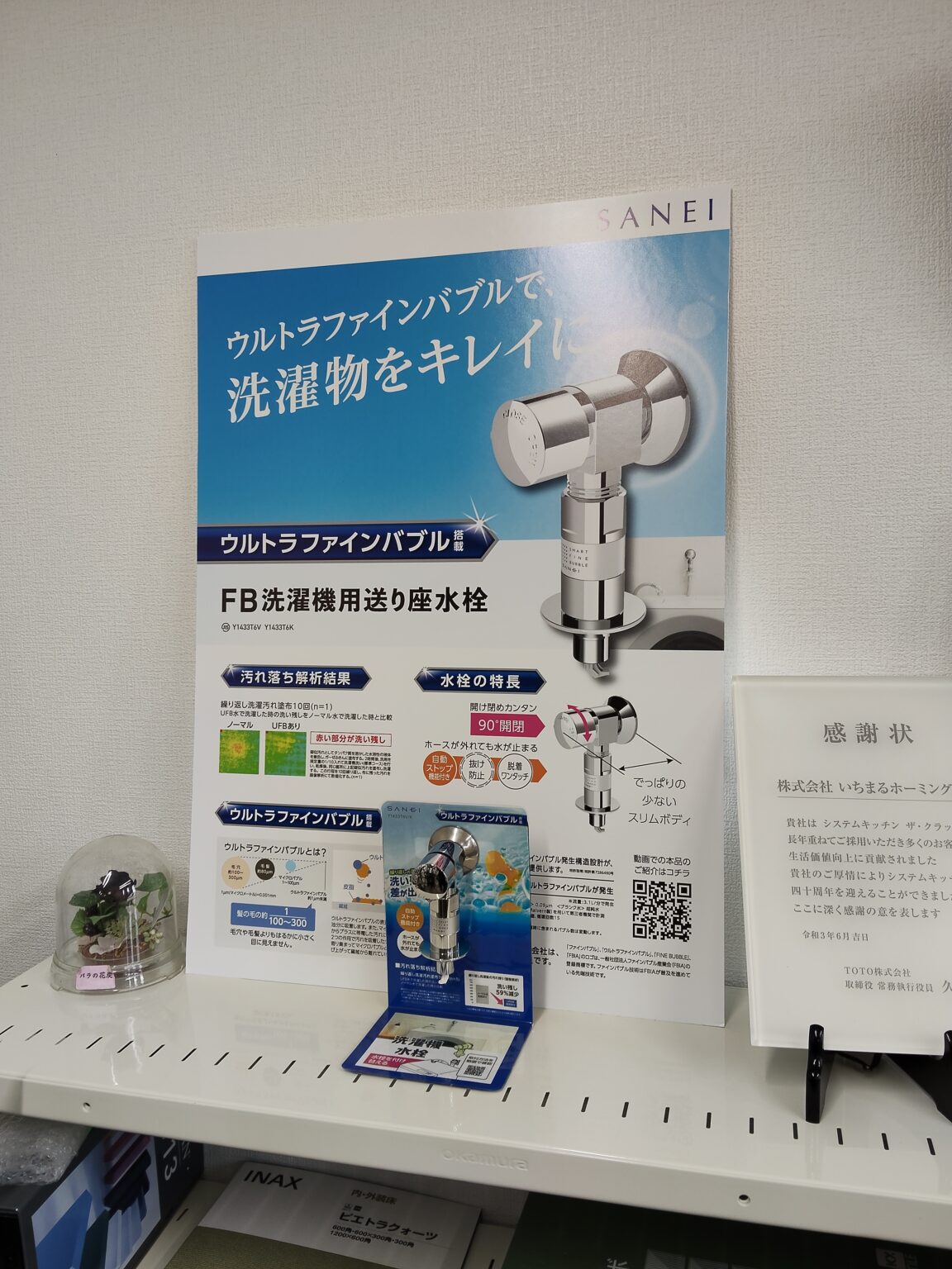 いちまるホーミングでは、ウルトラファインバブル水栓の実物展示も行っており、サイズ感やデザインを実際に手に取ってご覧いただけます。