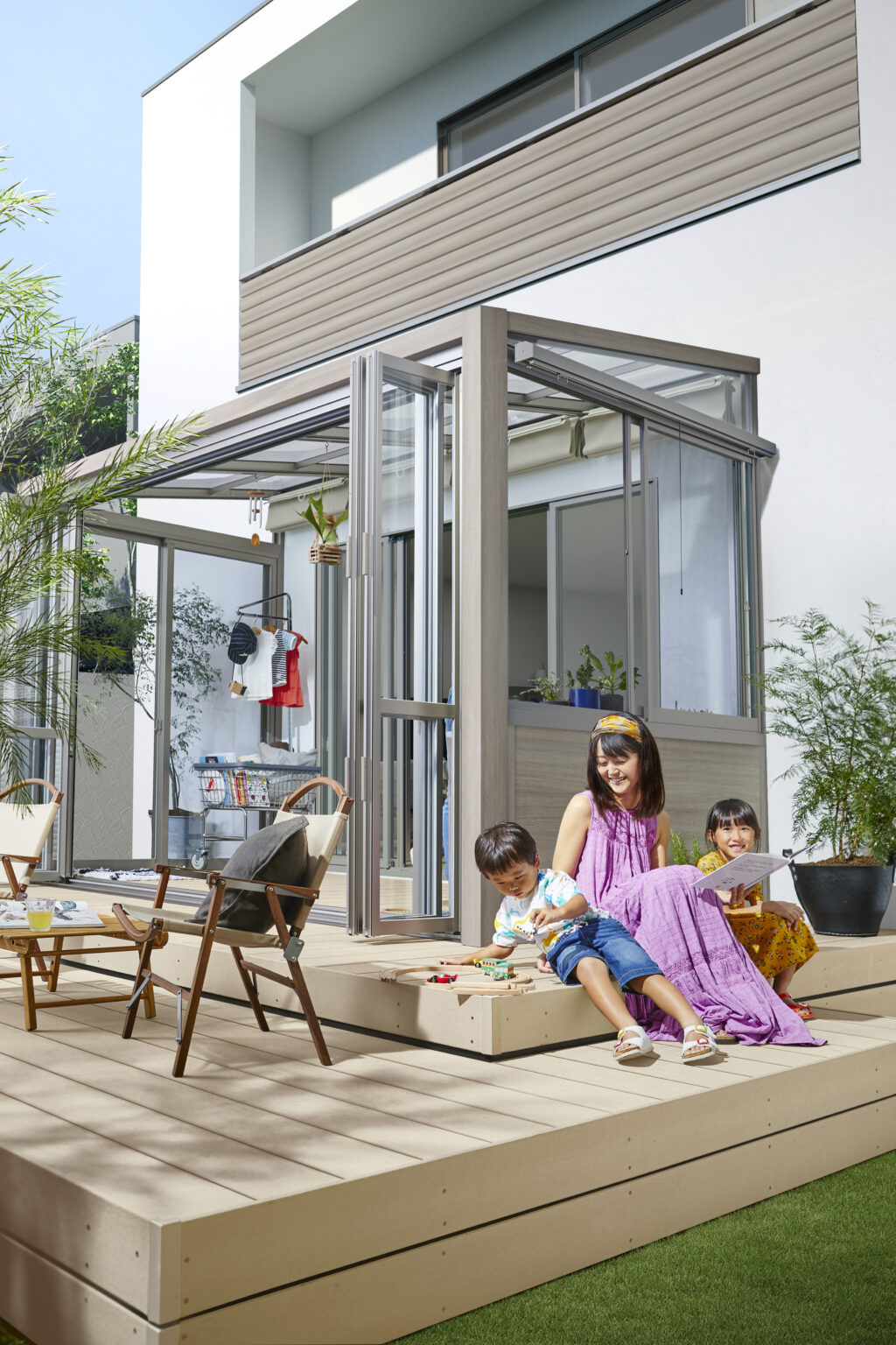 「洗濯のための空間」だけでなく、「家族それぞれが心地よく過ごせる場所」として暮らしにプラスできるのが、サンルームの大きな特長です。