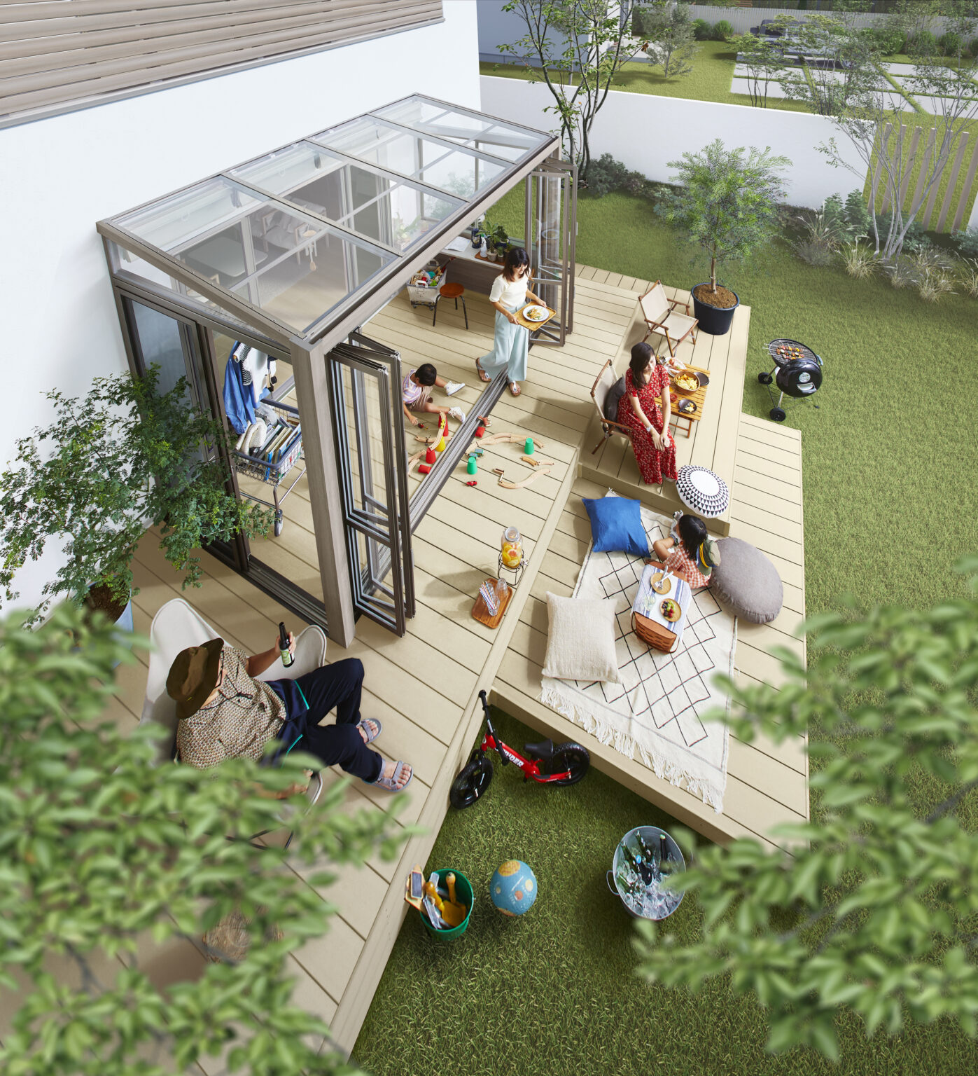 お子さんの遊び場としてはもちろん、愛犬や愛猫の日向ぼっこスペース、観葉植物を楽しむグリーンコーナーとして活用できるのも魅力のひとつです。