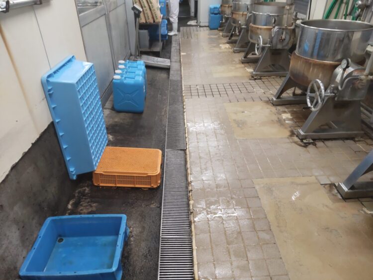 製造中は熱湯を使用するので、コンクリート側溝やタイル目地にダメージが蓄積されて、破損が目立ってきました。