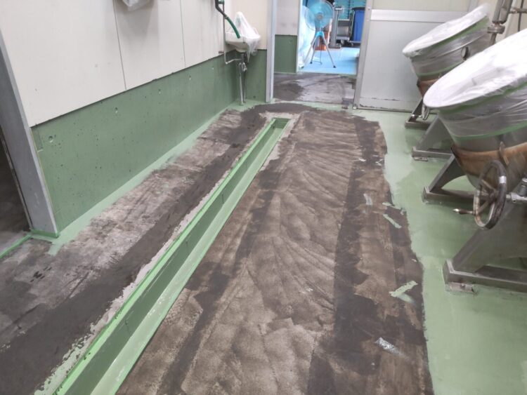 長年使用してきました食品製造工場の床をメンテナンスしました。