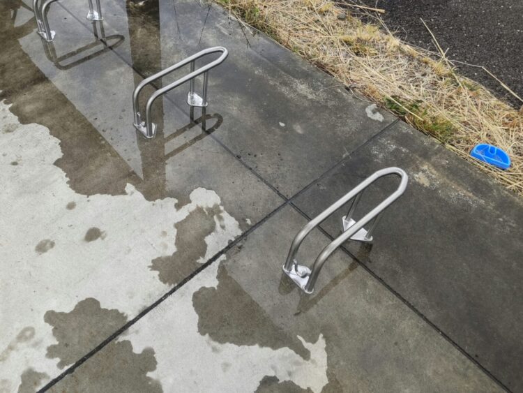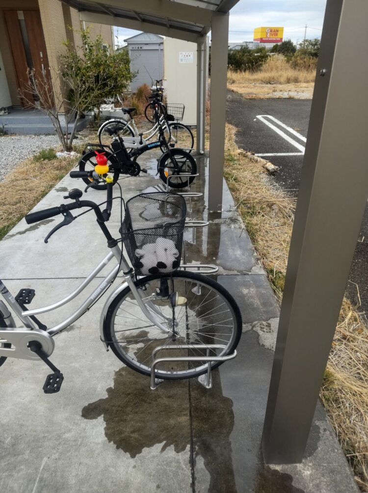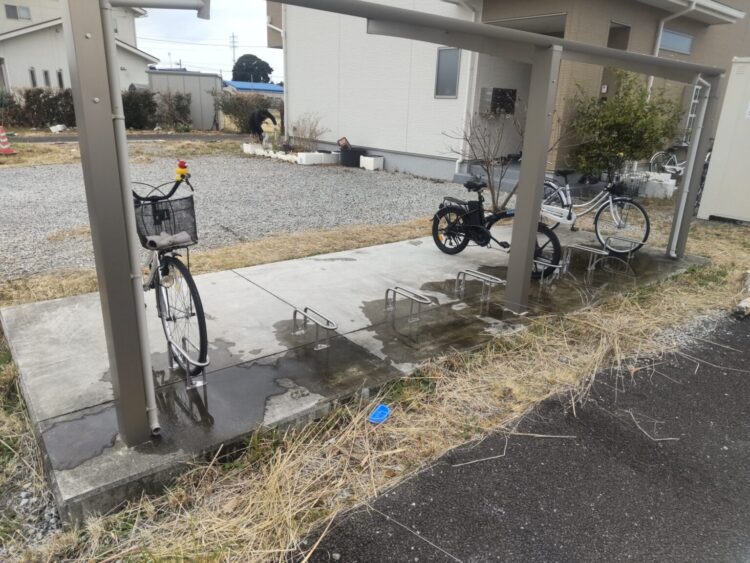 強風で自転車が転倒してしまうとのご相談で、7台分の駐輪ラックを取付けました。