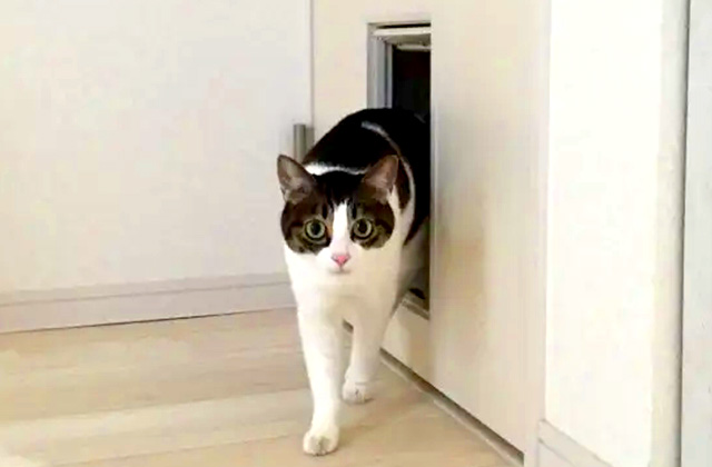 お家の人が留守でも、ペットが自由に部屋の出入りができる「くぐり戸付き」ドアへ変更することで、ペットがもっと身近な存在になります。